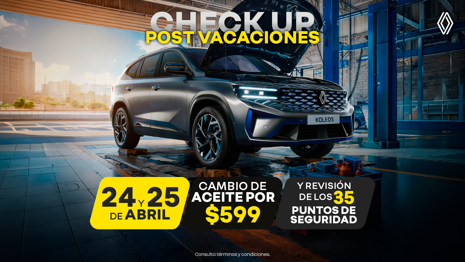 Después de la carretera, tu auto merece un mantenimiento completo. Aprovecha nuestro Check Up Post Vacaciones los días 24 y 25 de abril, donde encontrarás cambio de aceite por solo $599 y una revisión exhaustiva de los 35 puntos de seguridad para garantizar su óptimo funcionamiento. Calidad, confianza y tranquilidad al volante.