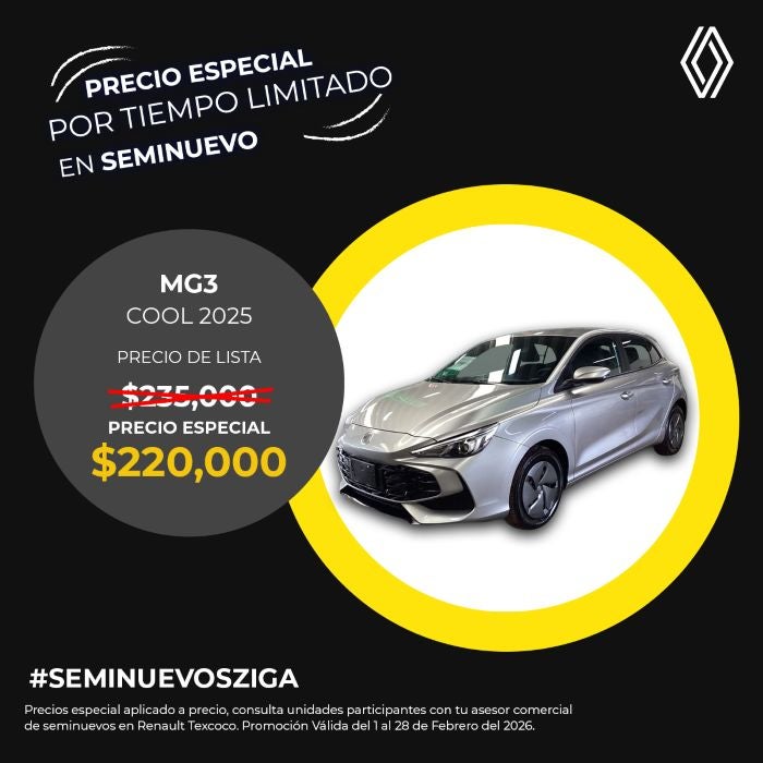 El precio mostrado ya incluye el bono aplicado. Válido únicamente para MG3 Cool modelo 2025 seminuevo.